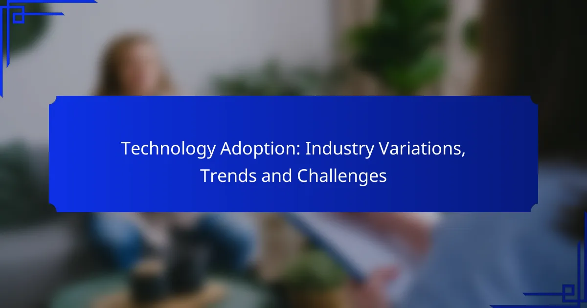 Technology adoption varies significantly across industries, driven by unique trends and challenges. In healthcare, advancements like telemedicine and AI diagnostics are reshaping patient care, while manufacturing embraces smart technologies to boost efficiency. However, businesses often face hurdles such as resistance to change and skill gaps, which can impede successful implementation and overall competitiveness.